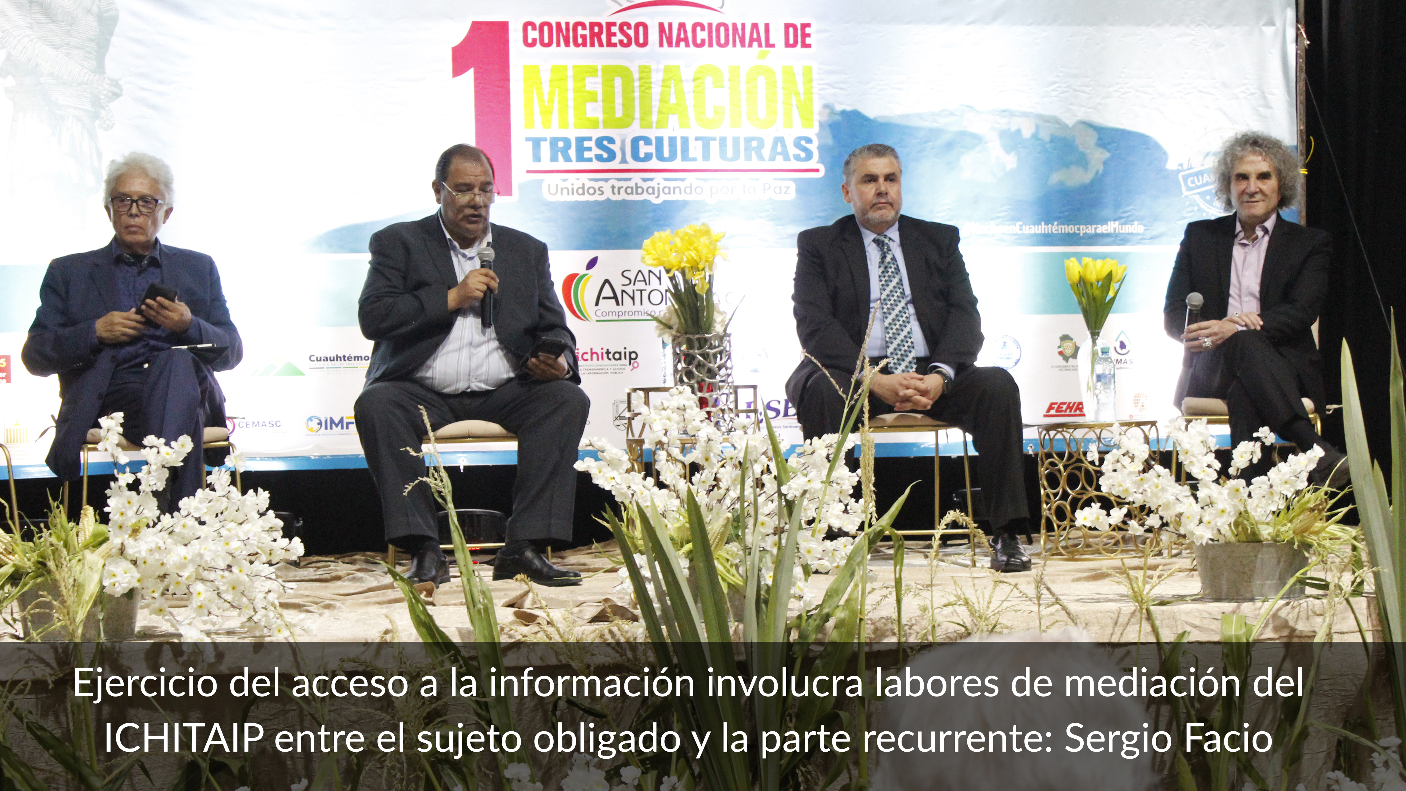 En el marco del evento, el Comisionado Presidente del Ichitaip, Sergio Rafael Facio Guzmán participó en el conversatorio denominado “Importancia de la medicación y los buenos oficios en la resolución de conflictos políticos y sociales” al lado de Jorge Pesqueira Leal, Héctor Hernández Tirado y fungió como moderador Héctor Iván Jiménez Esponda.