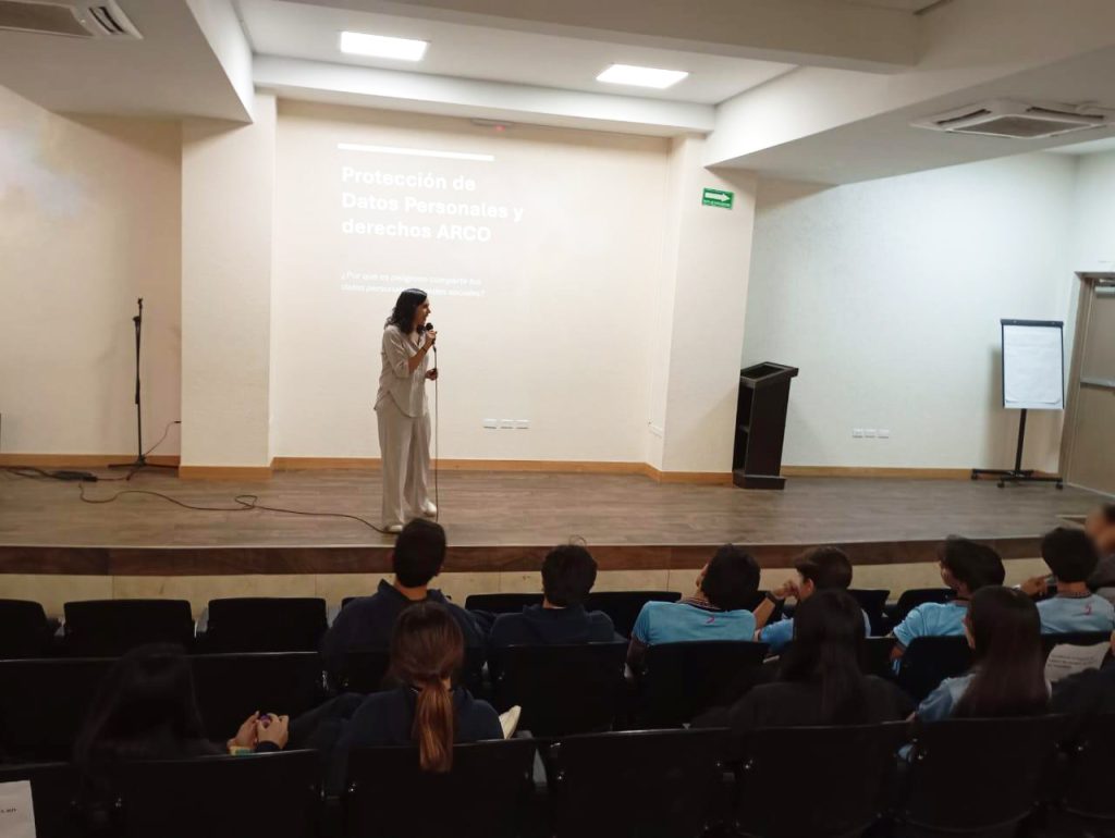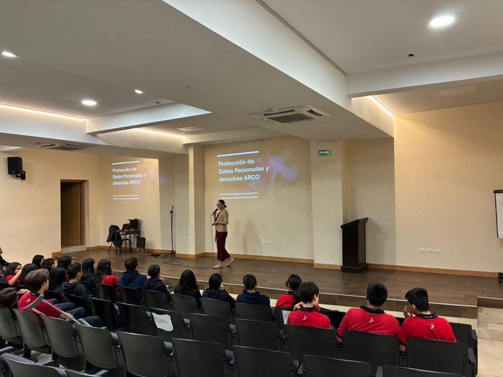 El día de hoy, personal del Instituto Chihuahuense para la Transparencia y Acceso a la Información Pública (ICHITAIP) encabezados por la Comisionada Karla Gabriela Fuentes Moreno y la Directora de Capacitación, Ivonne Coello Muñoz, visitó las instalaciones de la preparatoria ESFER Salesianos, donde se impartió una plática dirigida a los estudiantes con el propósito de concientizarlos sobre la importancia de cuidar sus datos personales, especialmente en el entorno digital.