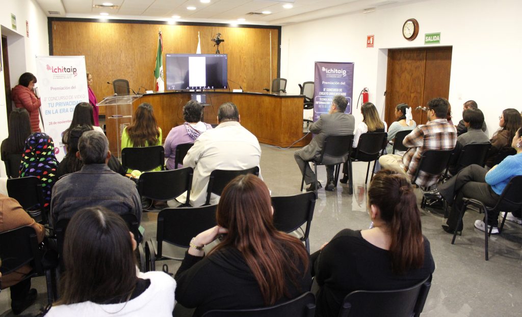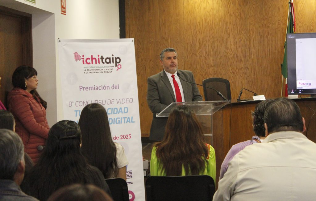 “Nuestro país vive situaciones complejas en torno a la privacidad debido al acceso a las plataformas electrónicas, por todo el avance tecnológico, por lo que la participación de los jóvenes debe ir cobrando relevancia ahora que se vuelven a convertir en la esperanza para el futuro de México”, manifestó el Comisionado Presidente del Instituto Chihuahuense para la Transparencia y Acceso a la Información Pública (ICHITAIP) Sergio Rafael Facio Guzmán, durante la celebración del evento de entrega de los premios a los ganadores de su 8° Concurso de Ensayo Universitario “Tecnología, Acceso a la Información y Transparencia. Reto de las Dependencias Públicas”, así como del Octavo Concurso de Video 2025 “Tu Privacidad en la Era Digital”, en el que estuvo acompañado por la Comisionada María Selene Prieto Domínguez y el Titular del Órgano Interno de Control, Eduardo Chávez Almada.