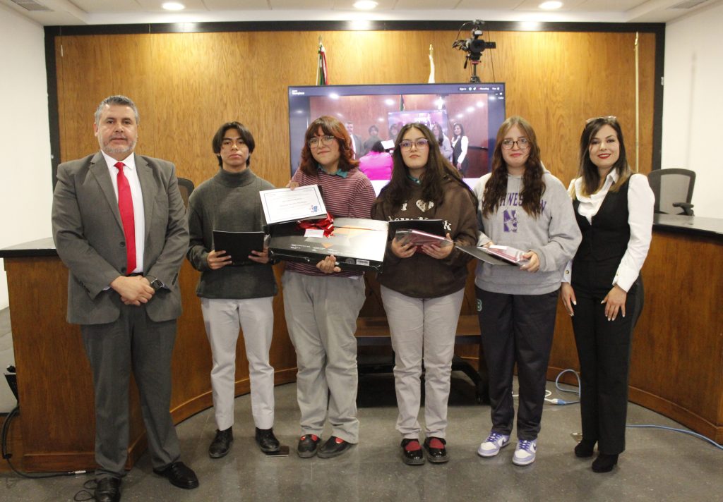Así mismo se contó con la presencia de Raquel Herrera, representante del Director General del COBACH, Reyes Humberto de las Casas Muñoz; de Jesús Fernández Zamora, Abogado General y Titular de la Unidad de Transparencia del COBACH; así como padres y familiares de los jóvenes ganadores.