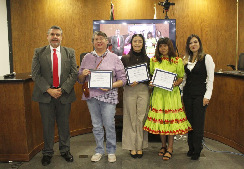 Así mismo se entregó un obsequio a manera de reconocimiento, al maestro del Colegio de Bachilleres 8, Eduardo Ramírez por su apoyo en la promoción del concurso de video, al igual que al catedrático de la Facultad de Derecho de la UACH, Alán Armendáriz, por su labor como impulsor de las actividades del ICHITAIP.