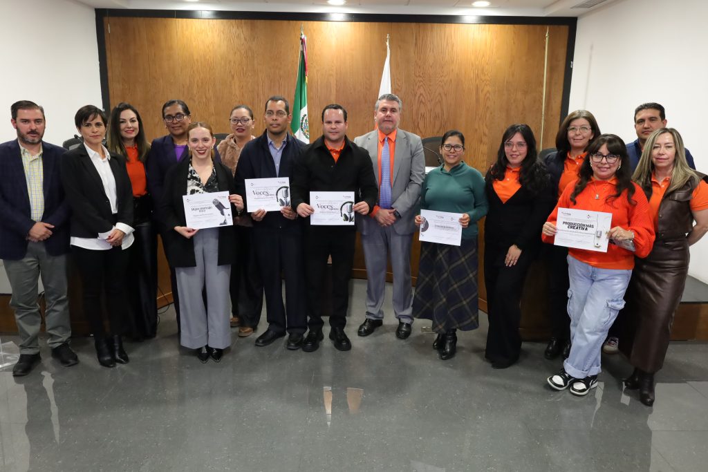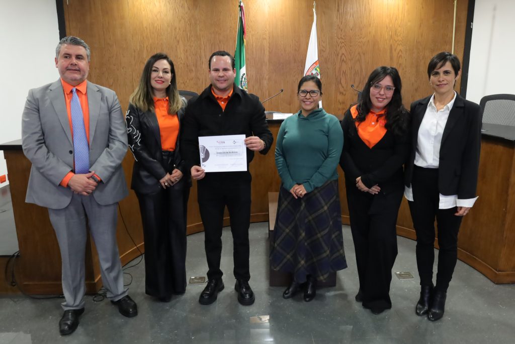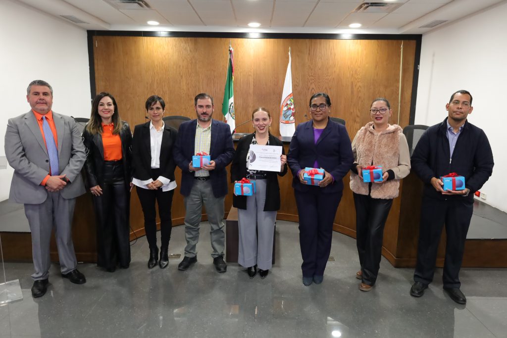El y las Comisionadas que conforman el Pleno del Instituto Chihuahuense para la Transparencia y Acceso a la Información Pública (ICHITAIP) premiaron a los dos equipos ganadores del “Podcast Ético” celebrado en su primera edición a convocatoria del Grupo de Ética y Prevención de Conflictos de Interés.