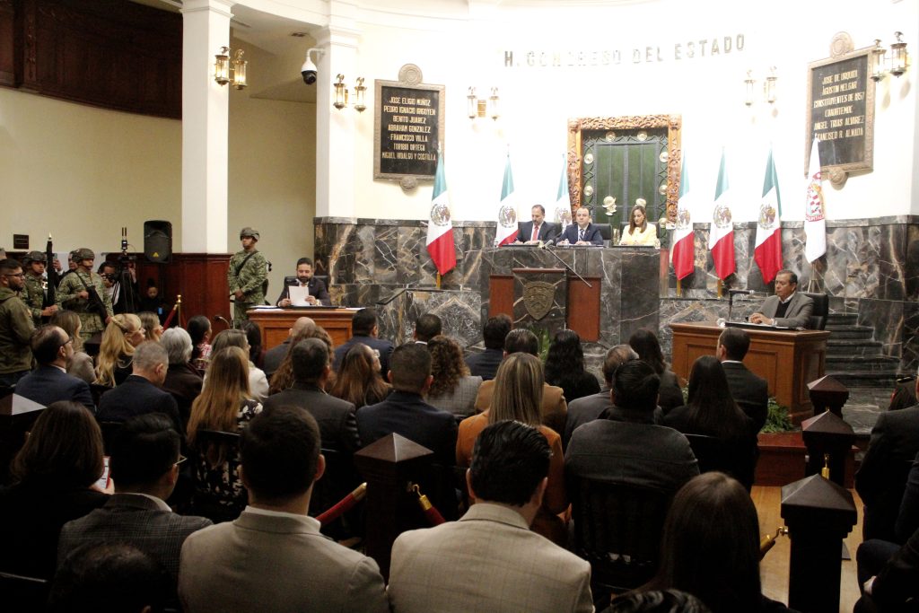 El acto fue encabezado por el Presidente del Poder Legislativo local, Guillermo Ramírez Gutiérrez; por el Secretario General de Gobierno, Santiago de la Peña Grajeda en representación de la Gobernadora del Estado, María Eugenia Campos Galván; y por la Magistrada Presidenta del Poder Judicial del Estado, Marcela Herrera Sandoval.