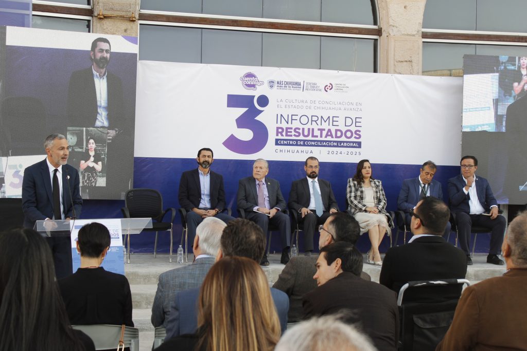 Participan Comisionada Karla Gabriela Fuentes y Comisionado Presidente del ICHITAIP, Sergio Rafael Facio, en Informe de Labores del Centro de Conciliación Laboral