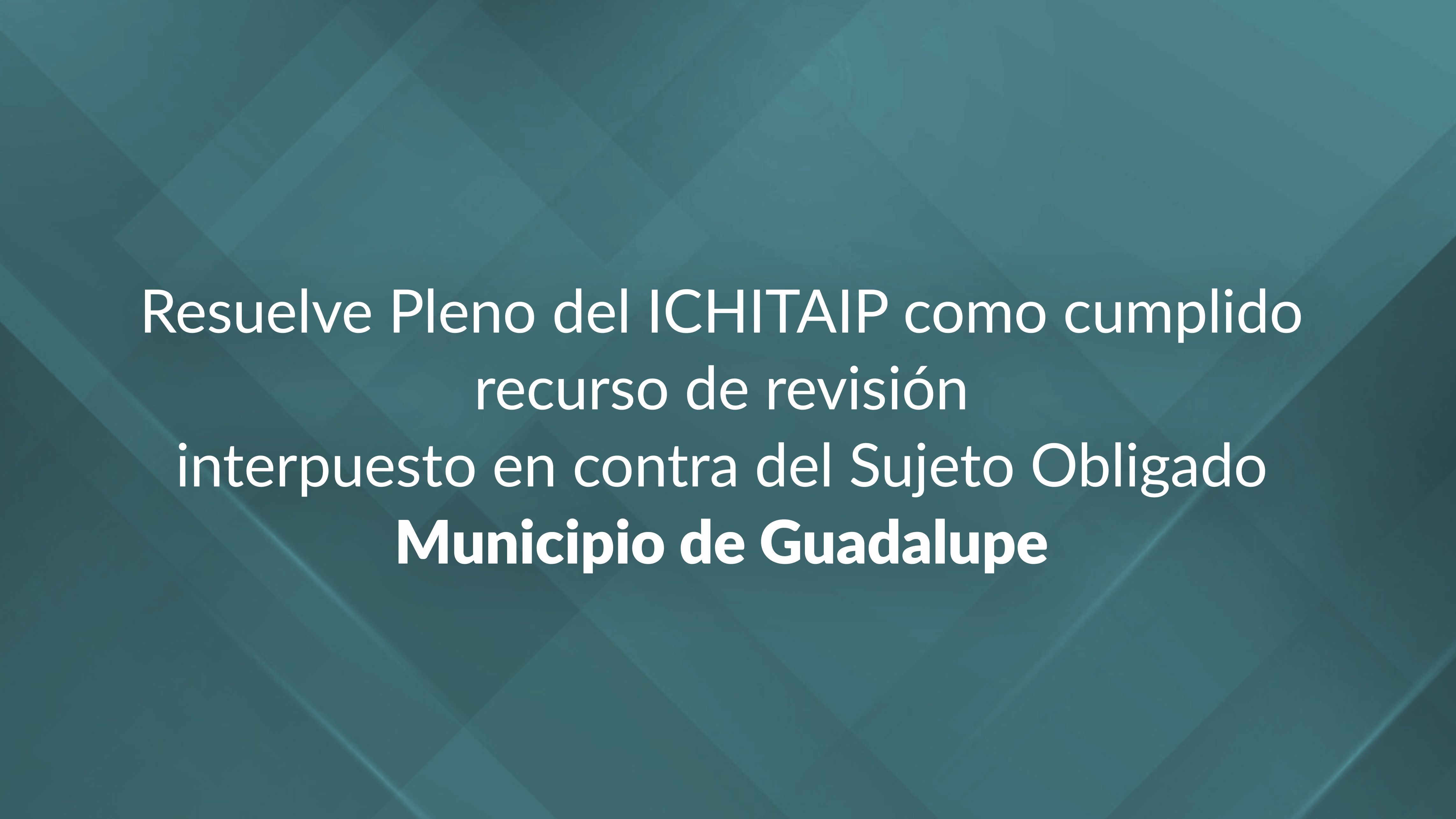 Resuelve Pleno del ICHITAIP como cumplido recurso de revisión interpuesto en contra del Sujeto Obligado Municipio de Guadalupe – ICHITAIP