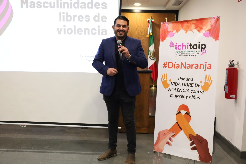 Con el fin de promover la igualdad de género y erradicar conductas violentas, funcionarios y personal del Instituto Chihuahuense para la Transparencia y Acceso a la Información Pública (ICHITAIP) participaron en la plática “Masculinidades libres de violencia”, actividad realizada como parte de las actividades que cada 25 de mes se realizan para eliminar la violencia contra la mujer.