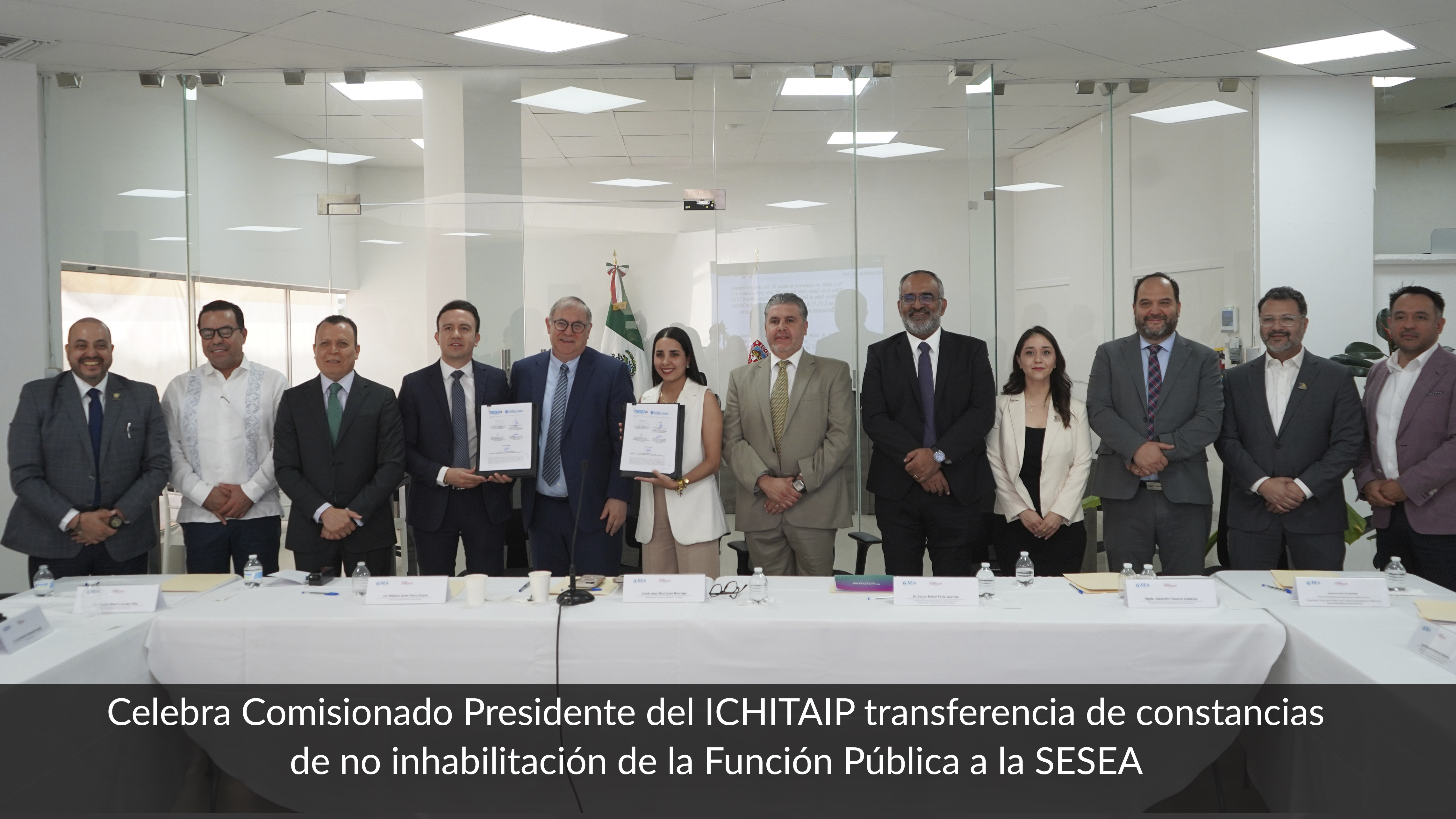 En el marco de la Cuarta Sesión Ordinaria del Comité Coordinador del Sistema Estatal Anticorrupción (SEA), el Comisionado Presidente del Instituto Chihuahuense para la Transparencia y Acceso a la Información Pública (ICHITAIP) Sergio Rafael Facio Guzmán, festejó la firma del convenio de colaboración entre la Secretaría de la Función Pública y la Secretaría Ejecutiva del Sistema Estatal Anticorrupción (SESEA), por el cual el Gobierno del Estado transfiere a esta última instancia el ejercicio de emisión de las constancias de no inhabilitación para las personas que aspiren a ingresar al servicio público o bien, a participar en los procesos de contrataciones gubernamentales.
